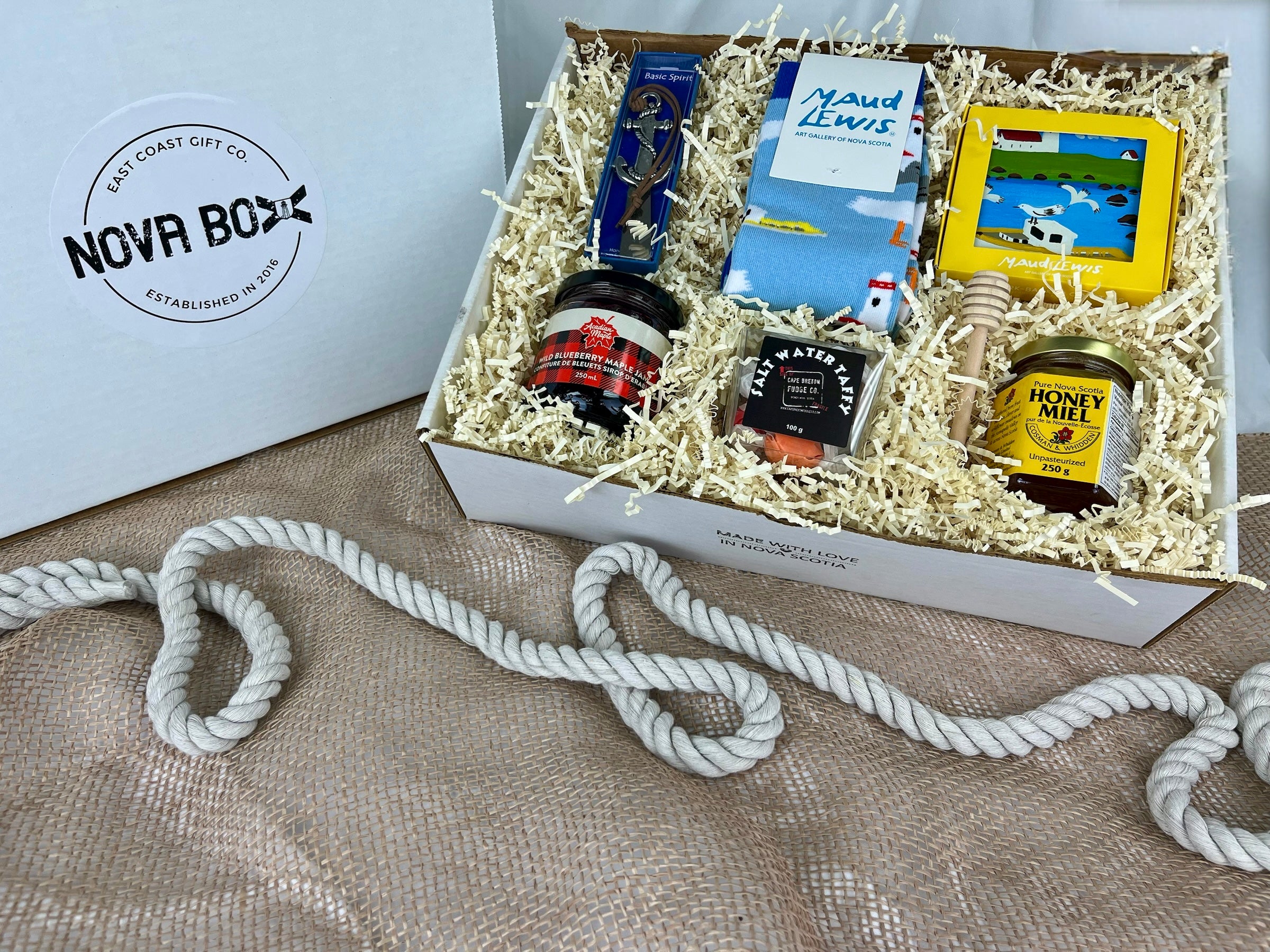 Nova Box is a warm embrace from home; it's a friendly reminder of why you love the east coast; it's a lovely little piece of the community that brings us all together. We believe in helping people feel like home, no matter where they are. The way we share love from the Maritimes is by creating carefully curated boxes filled with treasures from our shores.